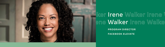 Irene Walker is a proven leader in program management, learning and development in digital media, with specialization in product, sales, and marketing. Irene has spent 17+ years developing unique and experiential programs to engage learning audiences with various styles and is known for bringing a spark to traditional forms of program management and training. Prior to Facebook, Irene was a Senior Director at Yahoo! and Pandora. In her undergrad work in Economics at the University of California, Berkeley, she was groomed in non-profit work with Berkeley's Black Repertory Group Theater and inspired to develop education programs for communities of color in the local Bay Area. Today she focuses on strategic and measurable training initiatives in partnership with marketing and product teams, as well as being a compelling presenter and trainer. Irene is equally motivated in life by her personal dedication to social impact and community-based organizations through voluntary program management, event planning, grant writing, and fundraising support.