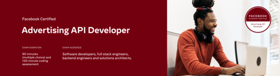 This certification measures competency configuring and troubleshooting Marketing API integrations. The certification consists of two required parts: a multiple choice exam (520-101) and a coding assessment (520-201). Facebook Certified Marketing Developer is a prerequisite for this certification.